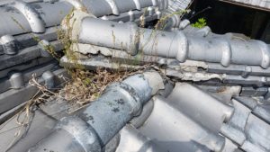 一度瓦を取り外し、湿った土を乾かします。そしてトンネルを作り積み戻し。